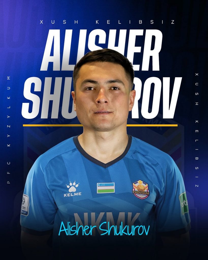 «Кызылкум», активно готовящийся к новому сезону, объявляет об очередном трансфере. Желаем Алишеру успехов в его карьере в нашей команде!» — поприветствовали игрока в новом клубе.