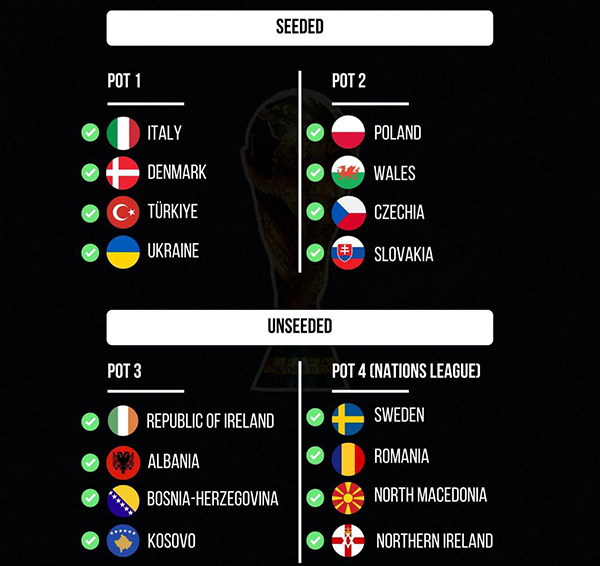 А это список команд, которые примут участие в плей-офф УЕФА, с распределением на корзины.