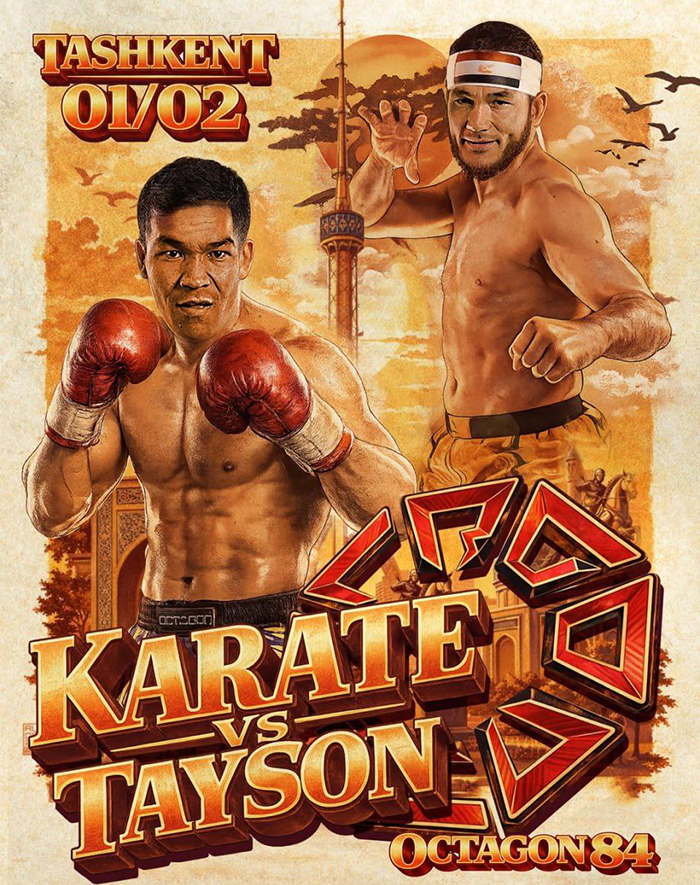 ДУШАНБЕ, январь — SPORTS.tj. 1 февраля в Ташкенте, на арене Humo Arena, состоится турнир Octagon 84, главным украшением которого станет бой таджикского бойца Камариддина Хасанова, более известного под прозвищем Камиль Каратэ, против узбекского проспекта по прозвищу «Узбекский Тайсон».