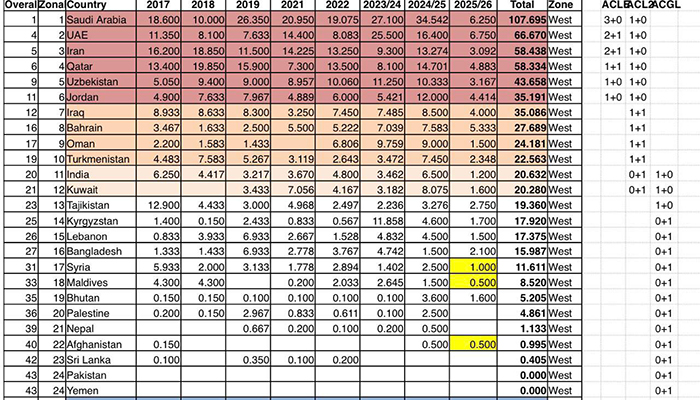 Если положение стран не изменится до конца сезона, то Иордания вытеснит Ирак из элитной Лиги чемпионов в сезоне-2027-28. Правда, разница между двумя странами настолько мизерна, что возможен любой вариант развития событий.