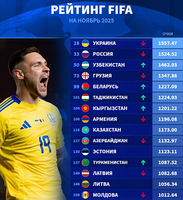 ДУШАНБЕ, ноябрь — SPORTS.tj. Команда поднялась на 101-е место, улучшив позицию на одну строчку и набрав 1224,93 очка. Для итогов осени это важный сигнал: стабильные победы в отборе Кубка Азии-2027 начинают приносить рейтинговые дивиденды.