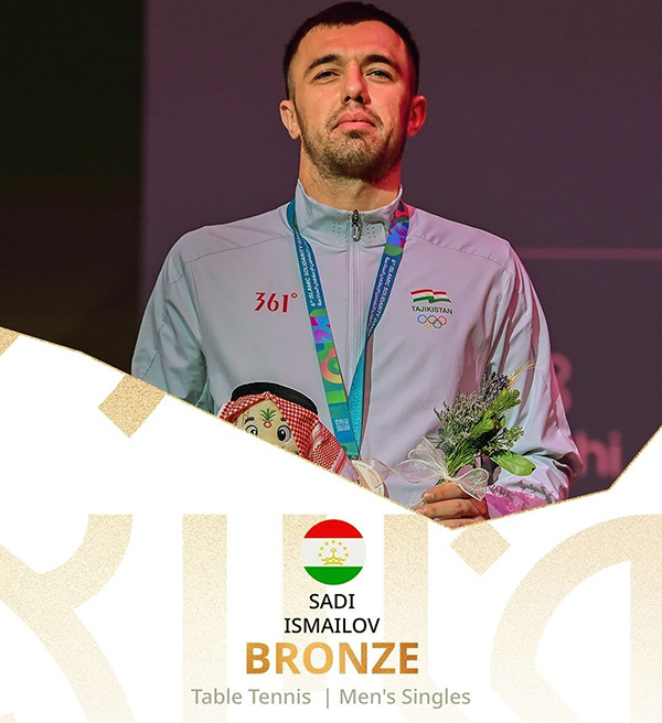 ДУШАНБЕ, ноябрь — SPORTS.tj. Большая неожиданность пришла из Саудовской Аравии — на Исламиаде-2025 таджикский теннисист Саъди Исмаилов выиграл бронзу. Он стал третьим в настольном теннисе.