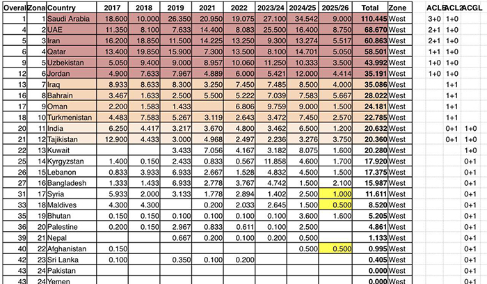 Кувейт и Ливан традиционно сильны, но нестабильны: их клубы часто вылетают на ранних стадиях. Индия после снятия «Мохун Багана» рискует потерять очки — АФК пока не объявила, как это скажется на подсчётах. Возможен сценарий, при котором оставшиеся клубы будут получать меньше средних баллов.