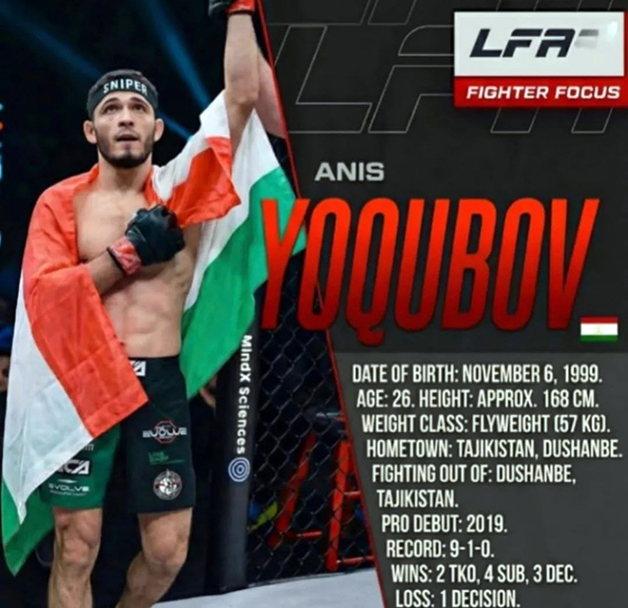 ДУШАНБЕ, декабрь — SPORTS.tj. Не так давно Анис Екубов (9-1) покинул лигу АСА, а теперь таджикистанец подписал контракт с американским промоушеном LFA.