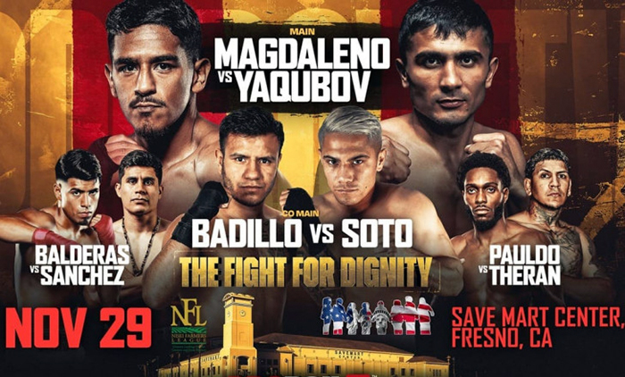 Теперь против него — куда более титулованный оппонент. 33-летний Джесси Магдалено (30-3) — бывший чемпион мира по версии WBO в первом полулёгком весе. В своё время он побеждал Нониито Донэйра и защищал титул против элиты дивизиона.